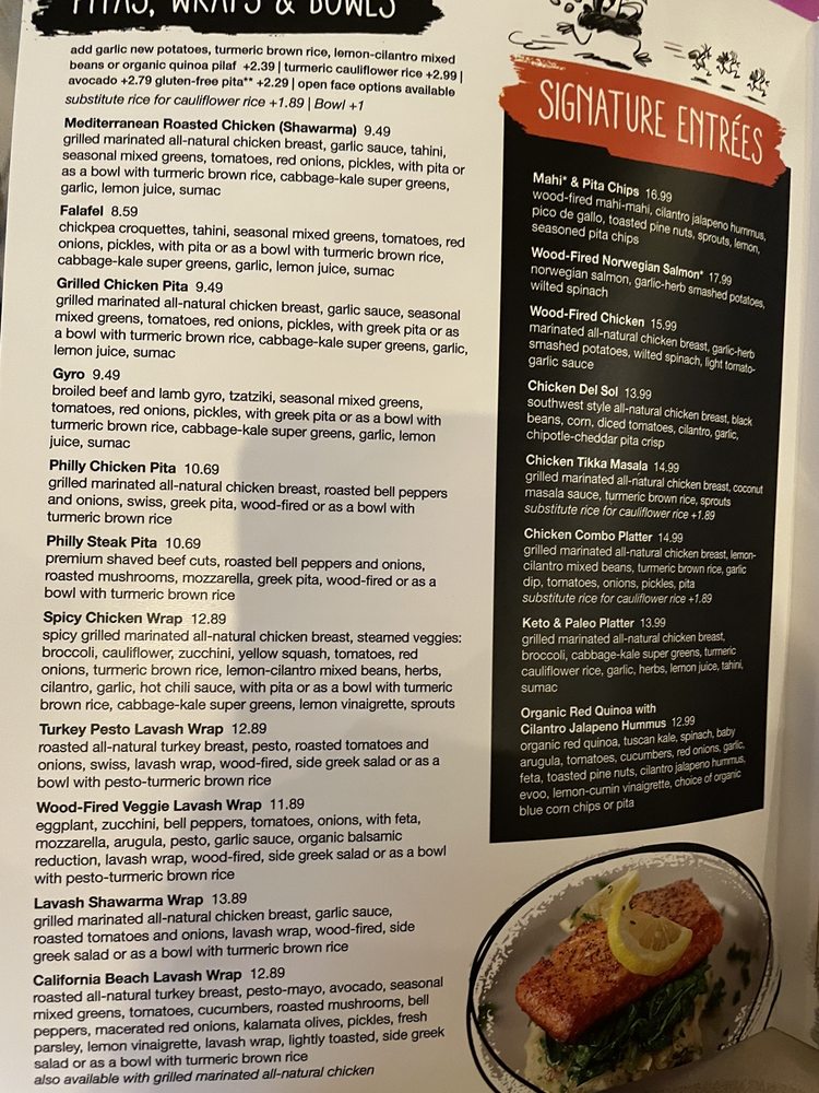 grilled marinated all-natural chicken breast, garlic sauce, roasted tomatoes and onions, lavash wrap, wood-fired, side greek salad